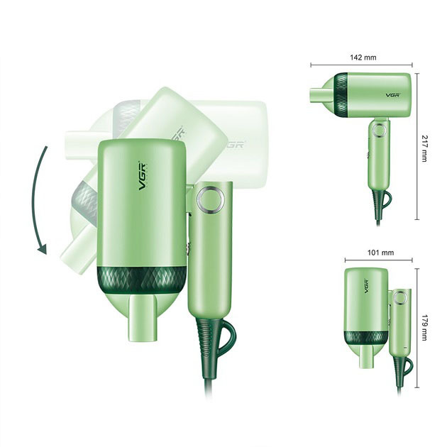 Стильні зачіски не повинні бути прерогативою професійних стилістів! Тепер у вас є можливість створювати ідеальні локони та зачіски у будь-який час за допомогою міні фена для волосся VGR V-421!
