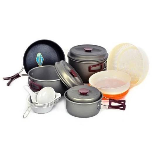 Набір похідного посуду Kovea Hard 56 KSK-WH56призначений для приготування їжі як на відкритому вогні, так і на пальнику. Каструлі можна скласти один в одного, заощаджуючи корисний обсяг вашого спорядження. Котелки та сковорода виготовлена з якісного андорованого алюмінію, що дозволяє уникнути пригоряння їжі, та легко миються. Основні предмети мають складні термоізольовані ручки, які запобігають опікам.