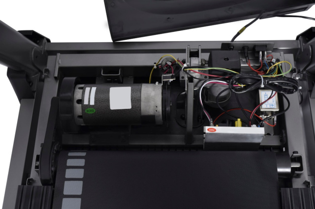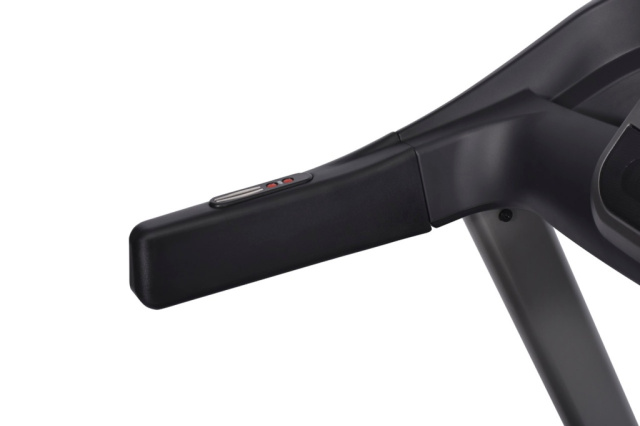 Інтуїтивне керування: LСD-дисплей (158 x 97 мм) з підсвічуванням, що відображає швидкість, нахил, пульс, дистанцію, час, калорії та поточну програму тренування, кнопки швидкого вибору швидкості (6-10-14-18 км/год) та нахилу (3-7-11-15%); регулювання швидкості та нахилу на ручках.
