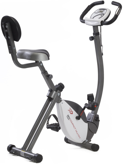 Велотренажер Toorx Upright Bike BRX Compact Multifit (BRX-COMPACT-MFIT) від італійського виробника Garlando S.p.A. призначений для повноцінного кардіотренування в домашніх умовах. Тренажер має 8-рівневе ручне регулювання навантаження, а також простий у користуванні комп'ютер. 6-кілограмовий маховик створює достатню плавність ходу, знижуючи навантаження на суглоби та мінімізуючи ризик отримання травми в процесі занять. Велотренажер розрахований на вагу до 100 кг і підійде для користувачів зростом до 1,9 м. Вбудовані сенсорні датчики вимірювання пульсу будуть доречними під час тренування для контролю частоти серцевих скорочень. Сидіння велотренажера з відкидною спинкою регулюється по висоті, кермо має регулювання як кута нахилу, так і по вертикалі для індивідуального налаштування. Транспортувальні ролики в передній частині тренажера дозволяють переміщати його по кімнаті.