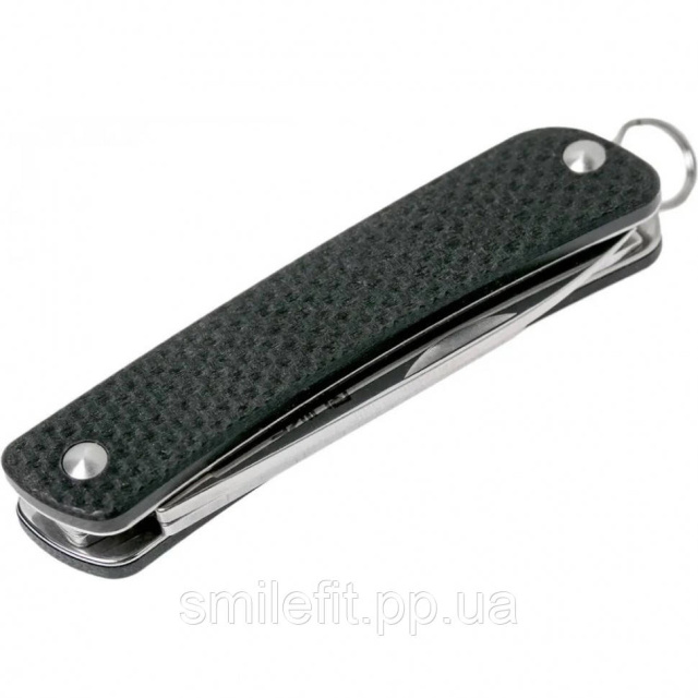 Крім клинка в рукоятці ховається ще одна сталева пластина, яку можна дістати з тієї ж сторони, що і клинок. У цій пластині помістилося відразу кілька додаткових інструментів. На самому краю розташована плоска викрутка з шліцом шириною 4 мм, Слідом за нею розміщений стропоріз, а потім – відкривачка для пляшок.