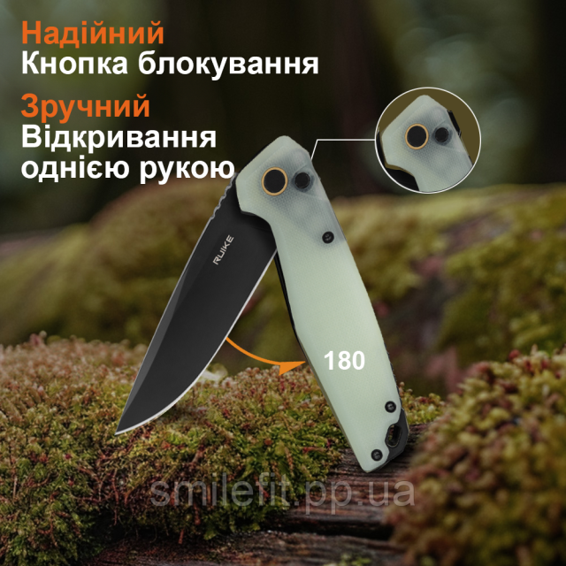 Ніж Ruike P873-C — це універсальний інструмент для повсякденного носіння, який можна брати з собою на пікнік, заміський відпочинок чи риболовлю. Попри повнорозмірний формат (у відкритому положенні довжина конструкції сягає 214 мм), модель здатна здивувати надлегкою вагою, що дорівнює лише 74 г. З урахуванням наявності кліпси, це робить транспортування гранично комфортним як у кишені сумки чи одягу, так і на поясі.