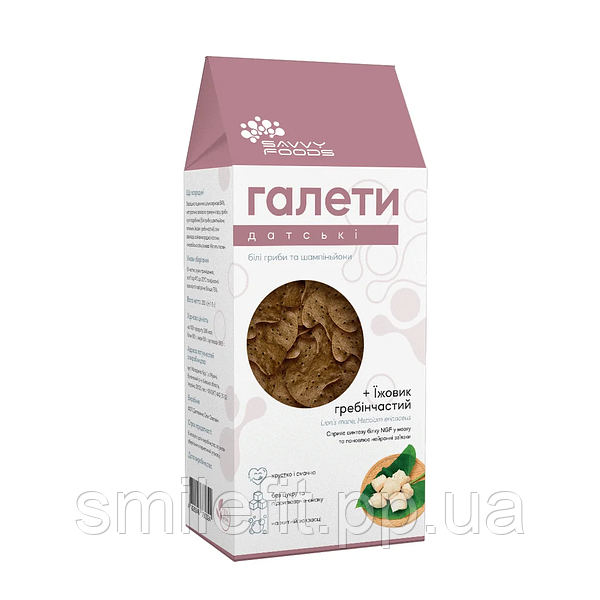 Це вкрай апетитні хлібці із двох видів закваски та чотирьох видів грибів. Окрім їжовика гребінчастого (найвідоміший нейро-гриб), всередині повно мікроелементів, що живлять тіло та розум. В наші часи таке всім не завадить. А ще, ці галети гарантовано смачні – ідеальний перекус, за який не соромно перед власним здоров’ям.