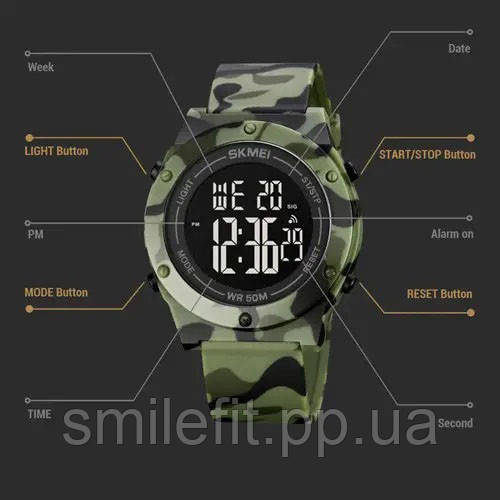 Годинник SKMEI 1772CMGNBK створений для тих, хто веде активний спосіб життя та цінує надійність у кожній деталі. Його яскравий камуфляжний дизайн одразу привертає увагу та підкреслює індивідуальність власника. Модель має міцний корпус і силіконовий ремінець, що забезпечує комфорт навіть під час інтенсивного руху або занять спортом.