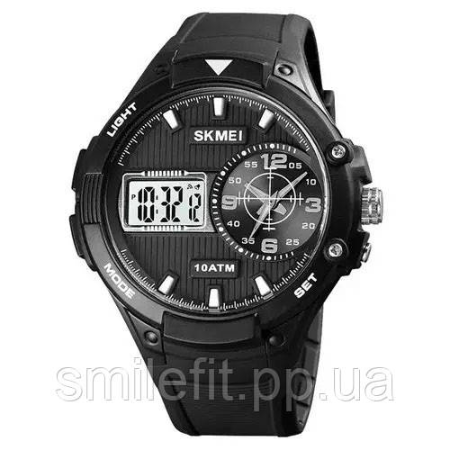Годинник SKMEI 1761BKWT — це універсальна модель для чоловіків, яка вдало поєднує класичний аналоговий циферблат з практичною цифровою індикацією. Міцний корпус чорного кольору, масивний обідок і великі стрілки створюють образ спортивного хронографа, який підходить як для активного способу життя, так і для повсякденного носіння. Завдяки поєднанню двох типів індикації, ви з легкістю зчитуєте час у будь-якій ситуації.