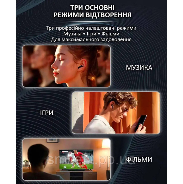 Уявіть вам бездротові навушники LX-10 TWS — поєднання передових технологій та стильного дизайну для вашого ідеального музичного досвіду. Ці навушники створені для тих, хто цінує якість звуку, зручність та інноваційні рішення. З LX-10 TWS ви відкриєте для себе світ бездоганного звучання та повного комфорту. Насолоджуйтеся неперевершеною якістю звуку і повною свободою руху з бездротовими навушниками LX-10 TWS. Завдяки Bluetooth 5.4, ви отримаєте стабільне та швидке підключення, а активне шумозаглушення (ANC) і шумопридушення при дзвінках (ENC) знедрукувати кристально чисте звучання в будь-якій обстановці. Компактний розмір та ергономічний дизайн гарантують комфорт навіть при тривалому носінні. Переваги навушників LX-10 TWS Earbuds Виняткова якість звуку Високоякісний 13 мм драйвер забезпечує яскраве та чисте відтворення кожної ноти. кожну ноту. Насолоджуйтесь чистим та безперервним музичним досвідом без перешкод. Інноваційні технології Нова технологія Bluetooth 5.4 дозволяє передавати звук без втрат, забезпечуючи точність і чіткість. Повнокольоровий сенсорний LED екран дозволяє легко керувати всіма функціями навушників одним дотиком. Ви можете контролювати свої звукові уподобання за допомогою 7 звукових режимів, таких як поп, рок, класика, джаз, вокал, електронна музика та танцювальна музика. Глибоке активне шумозаглушення (ANC) Інтелектуальна система шумоподавлення з широкосмуговим охопленням до 35 дБ блокує до 99,44% шуму. Зовнішні шуми більше не завада — насолоджуйтесь спокоєм і тишею. Подвійне шумозаглушення для дзвінків (ENC) забезпечує чіткий і вільний зв’язок навіть у шумних умовах. > Багато режимів Вибирайте із семи режимів еквалайзера: поп, рок, класика, джаз, вокал, електронна музика, танцювальна музика. Кожен режим розроблено для найкращого сприйняття звуку у різних жанрах. Довгий час роботи З ємністю батареї 320 мАг зарядного кейсу та 40 мАг навушників, ви можете насолоджуватися музикою до 5 годин без підзарядки, а в режимі очікування до 120 годин. Зручність використання Легка вага та ергономічний дизайн роблять навушники практично непомітними у вухах, а сенсорний LED екран дозволяє легко керувати всіма функціями. Легкі та зручні завдяки ергономічному дизайну під кутом 45°, навушники ідеально підходять для тривалого носіння без дискомфорту. Гладкі силіконові насадки забезпечують комфорт та надійну фіксацію без навантаження на вуха. Повна комплектація В комплект входять зарядний кейс, навушник, силіконові насадки та зарядний кабель. Чому варто купити Бездротові навушники LX-10 Відкрийте новий рівень звуку з бездротовими навушниками LX-10 TWS. Завдяки сучасним технологіям та продуманому дизайну, вони стануть вашим незамінним супутником у будь-якій подорожі, заняттях спортом або просто щодня. Насолоджуйтесь улюбленою музикою у високій якості, де б ви не були. Характеристики Бездротові навушники LX-10 Модель: TWS LX-10 Тип: Навушники з активним шумозаглушенням (ANC) Версія чіпа: V5.4 Тривалість відтворення: Приблизно 4-5 годин Частотний діапазон: 20 Гц – 20 кГц Ємність батареї навушників: 40 мАг Ємність батареї зарядного кейсу: 320 мАг Інтерфейс заряджання: Type-C Час заряджання: Приблизно 1,5 години Час очікування: Приблизно 120 годин