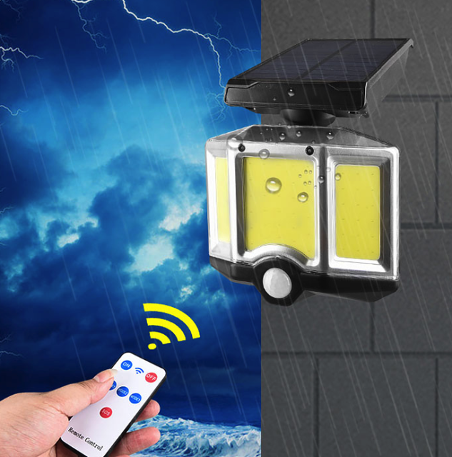 Светодиодный светильник 66COB, на солнечной батарее, с датчиком движения, с пультом ДУ, идеальное решение для освещения во дворе, подхода к дому, крыльца, подезда к гаражу, подсветки фасадов, заборов и т. д. Теперь ни каких проводов, ни какой платы за электричество !!!